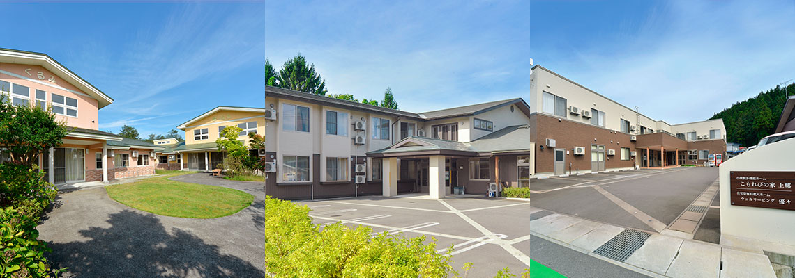 関連施設 | グループホーム こもれびの家・小規模多機能ホーム こもれびの家・住宅型有料老人ホーム ウェルリービング悠々・小規模多機能ホーム こもれびの家上郷・住宅型有料老人ホーム ウェルリービング優々・こもれびの家 居宅介護支援センター・福祉用具貸与 ハートウェルこもれび、訪問看護ステーション ナーシングケアこもれび |