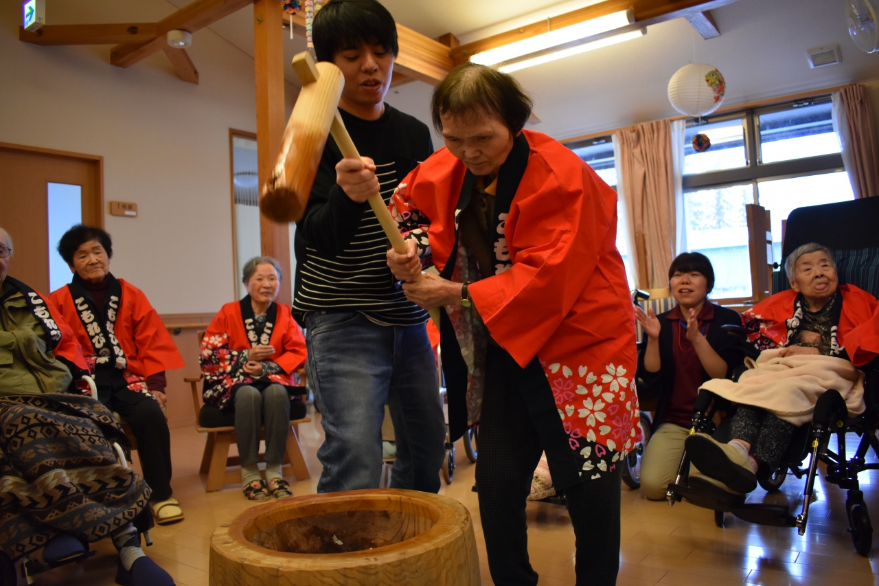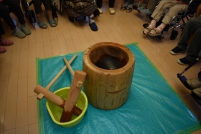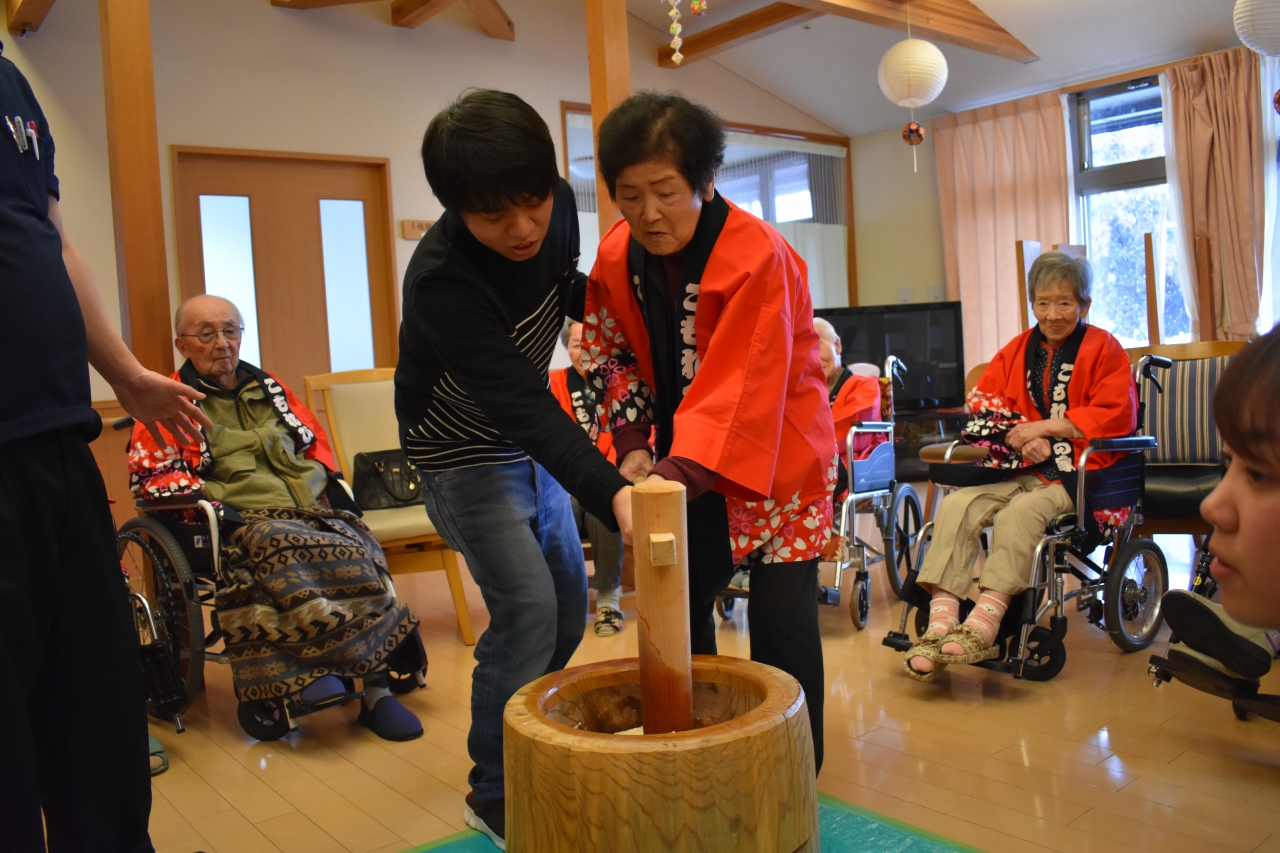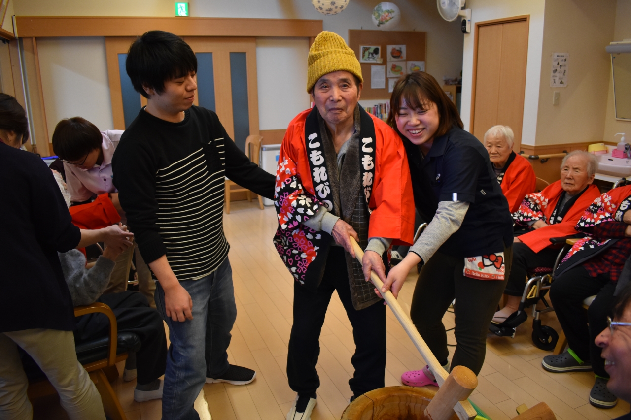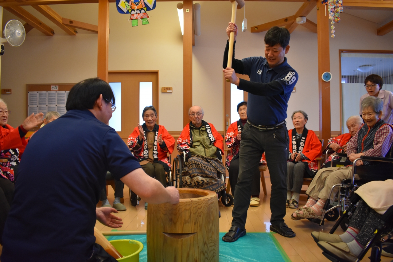 もちつき大会を利用者様と職員が一丸となり大盛りあがりで大成功でした。その後のおやつでおはぎを皆で美味しく頂きました!(^^)!