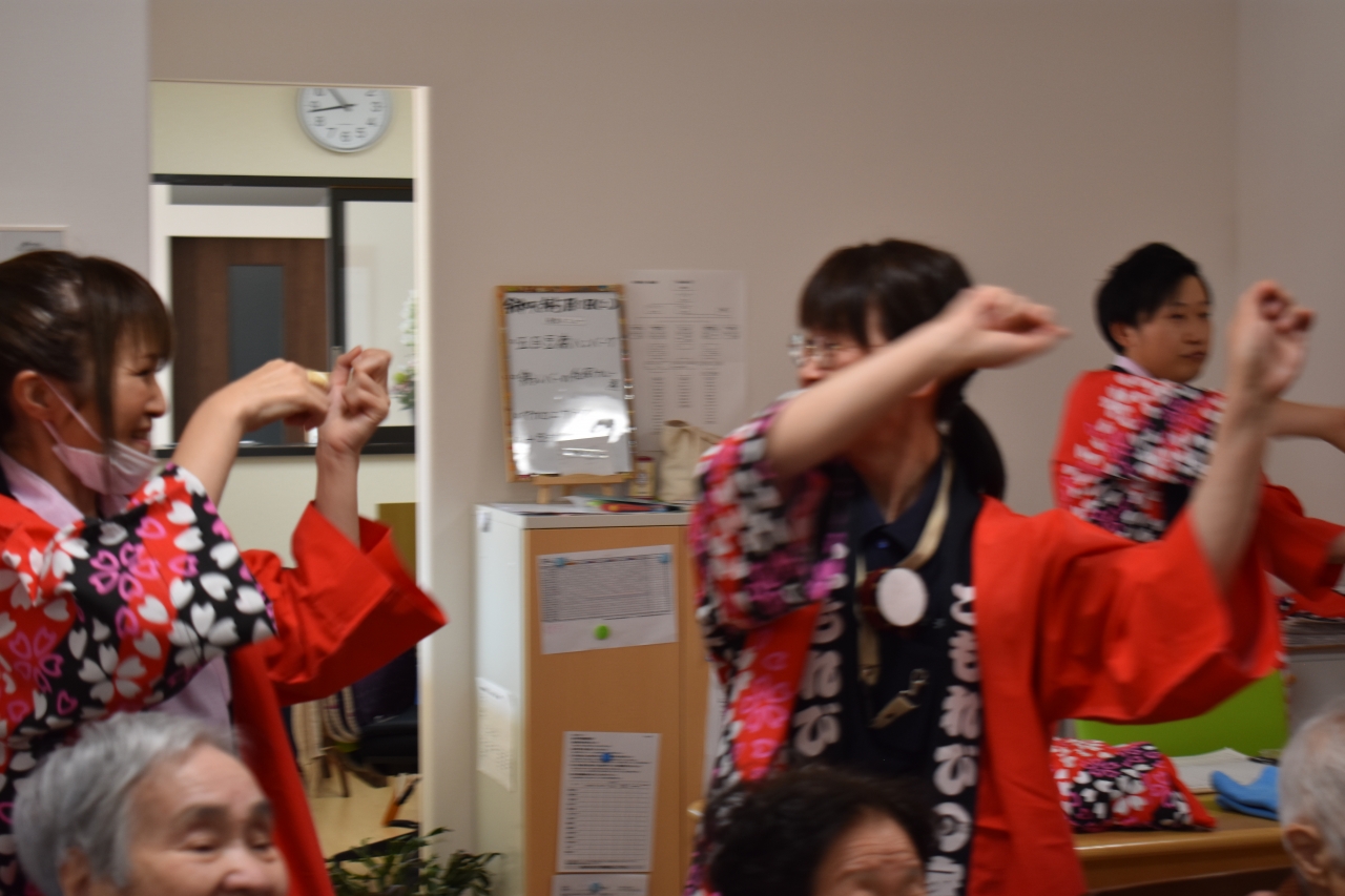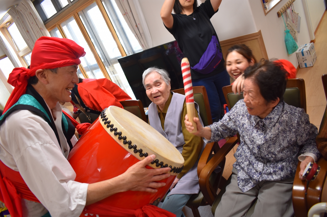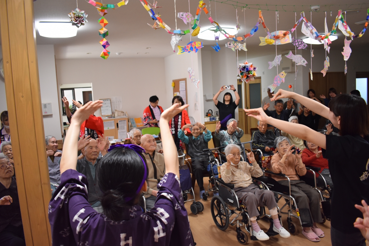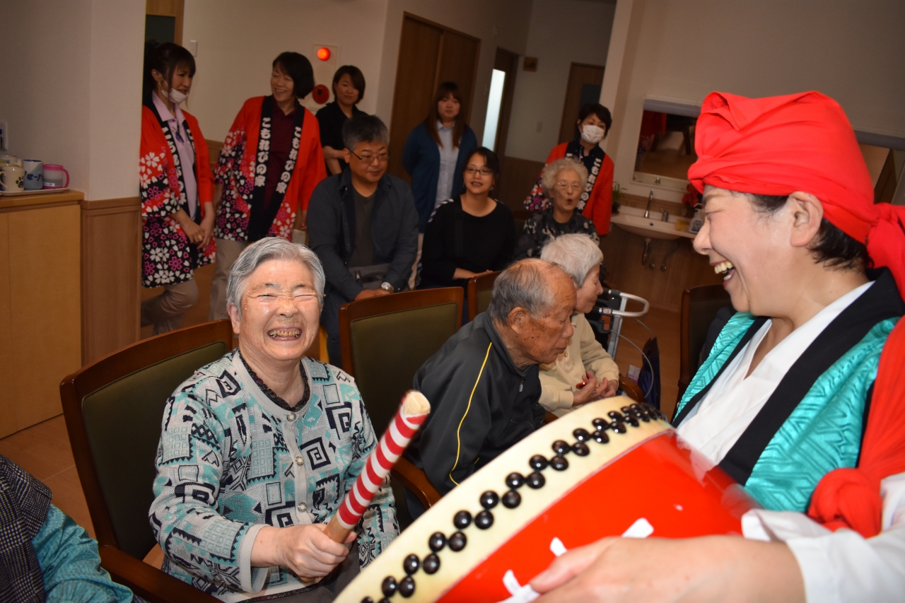 圧巻のパフォーマンスのあとは、利用者様にもエイサーに